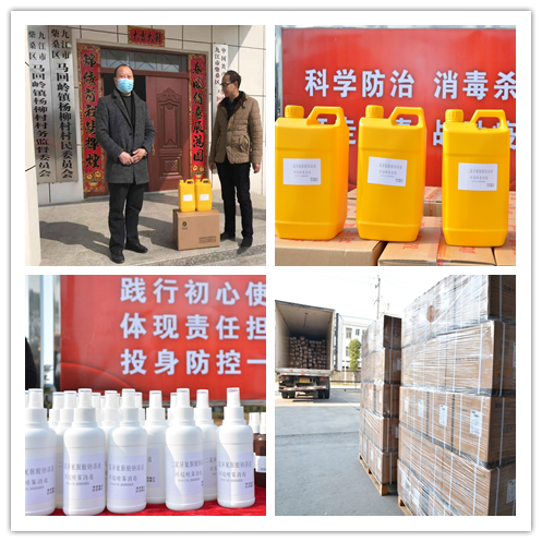 其中包括了向九江市各大商会的企业单位捐赠消毒液品助力企事业单位配合防控消毒工作;向一线抗疫人员免费发放卫生消毒及医疗防护物资;向柴桑区工业园区各企业单位随时免费发放复工生产准备的环境空间消杀物资。